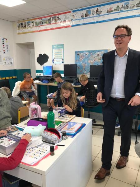 Fin septembre, les élèves de CM1 ont eu le plaisir de recevoir la visite de Monsieur Le Maire et son adjointe en classe. Comme chaque année, nos élèves ont reçu leur exemplaire personnel du Robert illustré avec un message glissé en première page :