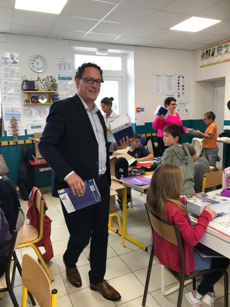 Fin septembre, les élèves de CM1 ont eu le plaisir de recevoir la visite de Monsieur Le Maire et son adjointe en classe. Comme chaque année, nos élèves ont reçu leur exemplaire personnel du Robert illustré avec un message glissé en première page :
