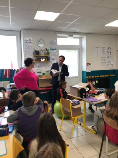 Fin septembre, les élèves de CM1 ont eu le plaisir de recevoir la visite de Monsieur Le Maire et son adjointe en classe. Comme chaque année, nos élèves ont reçu leur exemplaire personnel du Robert illustré avec un message glissé en première page :