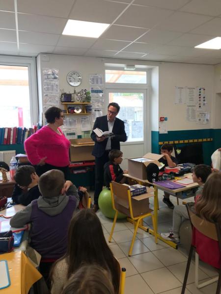 Fin septembre, les élèves de CM1 ont eu le plaisir de recevoir la visite de Monsieur Le Maire et son adjointe en classe. Comme chaque année, nos élèves ont reçu leur exemplaire personnel du Robert illustré avec un message glissé en première page :