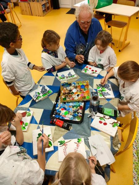 Christian, jardinier et peintre, est intervenu dans la classe de GS-CP pour aider les petits créatifs à réaliser des pancartes. Elles seront ensuite installées au jardin de monsieur Torterue où nos élèves avaient foulé les allées en juin dernier. Au programme de l’atelier des petits bricoleurs :