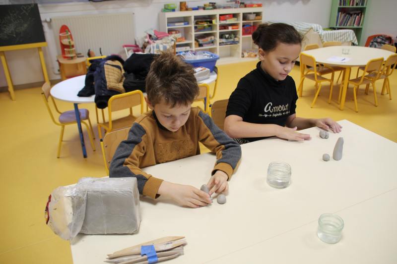 Vendredi 13 et lundi 16 janvier, nos écoliers de l’école Sainte Croix ont bénéficié de la programmation culturelle de la mairie de Saint Gilles Croix de Vie en rencontrant un sculpteur local. Par groupes, les enfants des classes de GS-CP, CE et CM ont rencontré Michaël Ezanno et se sont essayé au modelage de l’argile sur les conseils avisés de l’expert.