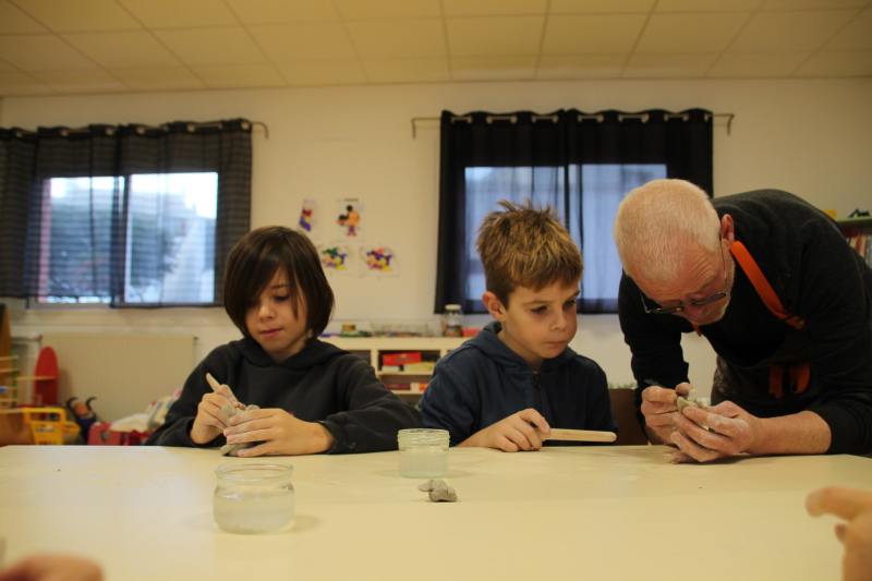 Vendredi 13 et lundi 16 janvier, nos écoliers de l’école Sainte Croix ont bénéficié de la programmation culturelle de la mairie de Saint Gilles Croix de Vie en rencontrant un sculpteur local. Par groupes, les enfants des classes de GS-CP, CE et CM ont rencontré Michaël Ezanno et se sont essayé au modelage de l’argile sur les conseils avisés de l’expert.