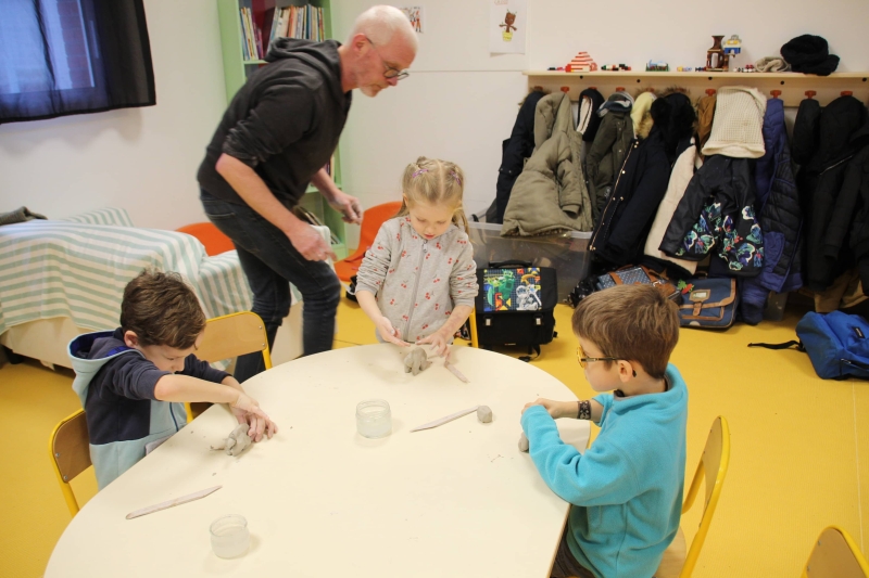 Vendredi 13 et lundi 16 janvier, nos écoliers de l’école Sainte Croix ont bénéficié de la programmation culturelle de la mairie de Saint Gilles Croix de Vie en rencontrant un sculpteur local. Par groupes, les enfants des classes de GS-CP, CE et CM ont rencontré Michaël Ezanno et se sont essayé au modelage de l’argile sur les conseils avisés de l’expert.