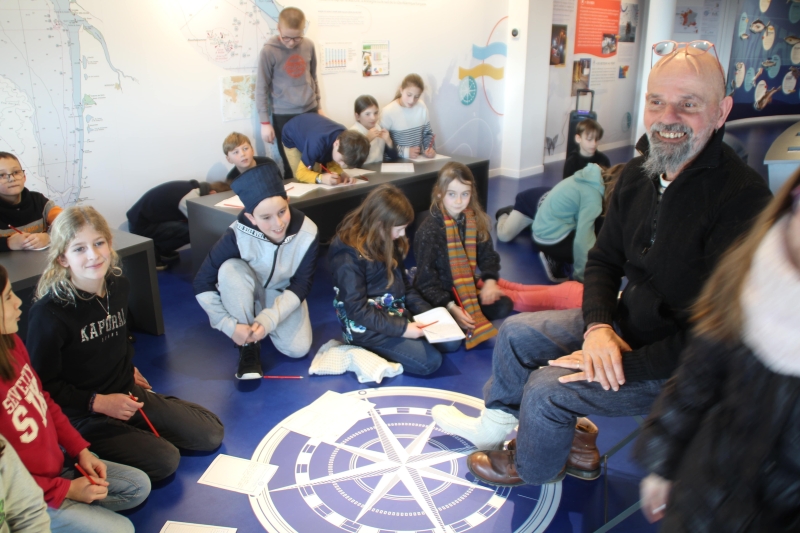 À l’extrémité du port de pêche, au bout de la criée, Escale Pêche accueille les petits et les grands à la découverte de la pêche en mer et de l’activité portuaire de Saint Gilles Croix de Vie. Ce centre d’interprétation propose à la fois du contenu informatif sur l’histoire de notre port de pêche, une exposition « Le voyage du poisson de l’océan à l’assiette » mais également du contenus ludique et intéractif avec des jeux pour découvrir les différentes espèces de poissons, les techniques de pêche en mer ou encore les ventes aux enchères à la criée. Nos CM ont écouté, testé et se sont entraînés au tri, à la pesée des poissons et à la vente aux enchères sur les écrans numériques à disposition.