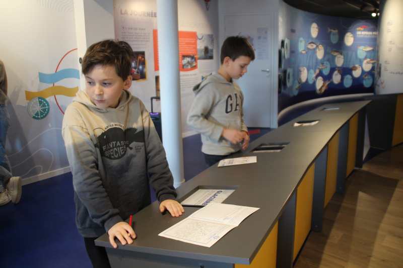 À l’extrémité du port de pêche, au bout de la criée, Escale Pêche accueille les petits et les grands à la découverte de la pêche en mer et de l’activité portuaire de Saint Gilles Croix de Vie. Ce centre d’interprétation propose à la fois du contenu informatif sur l’histoire de notre port de pêche, une exposition « Le voyage du poisson de l’océan à l’assiette » mais également du contenus ludique et intéractif avec des jeux pour découvrir les différentes espèces de poissons, les techniques de pêche en mer ou encore les ventes aux enchères à la criée. Nos CM ont écouté, testé et se sont entraînés au tri, à la pesée des poissons et à la vente aux enchères sur les écrans numériques à disposition.