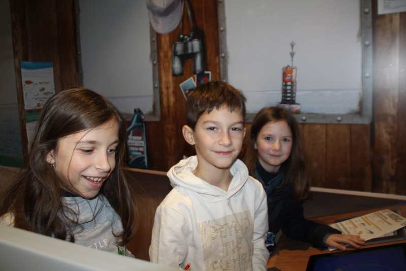 À l’extrémité du port de pêche, au bout de la criée, Escale Pêche accueille les petits et les grands à la découverte de la pêche en mer et de l’activité portuaire de Saint Gilles Croix de Vie. Ce centre d’interprétation propose à la fois du contenu informatif sur l’histoire de notre port de pêche, une exposition « Le voyage du poisson de l’océan à l’assiette » mais également du contenus ludique et intéractif avec des jeux pour découvrir les différentes espèces de poissons, les techniques de pêche en mer ou encore les ventes aux enchères à la criée. Nos CM ont écouté, testé et se sont entraînés au tri, à la pesée des poissons et à la vente aux enchères sur les écrans numériques à disposition.
