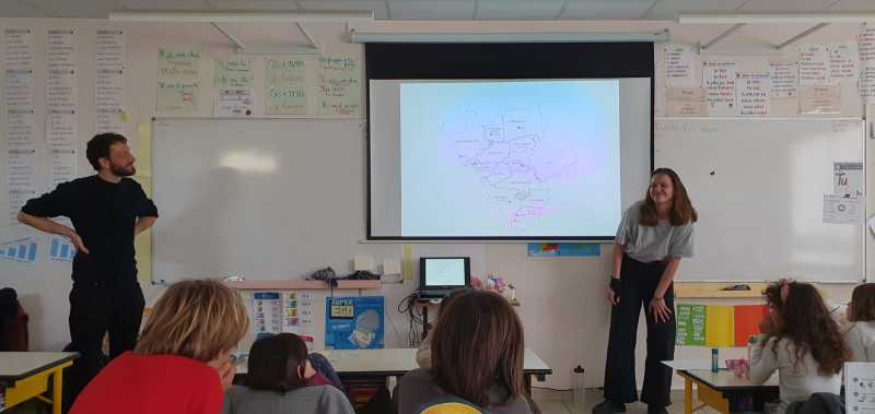 Dans le cadre de la politique culturelle du Pays de Saint Gilles Croix de Vie, un Contrat Local d’Education Artistique (C.L.E.A) a été signés entre la communauté de communes et l’État. Par le biais d’un appel à projet, une résidence d’artistes s’est installée sur le territoire pour développer et exposer des projets dans le champ des arts plastiques. C’est dans cette dynamique que deux artistes se sont rendus dans la classe des CE afin d’y présenter la mission de cartographie sensible sur l’eau qu’ils mènent dans notre commune.