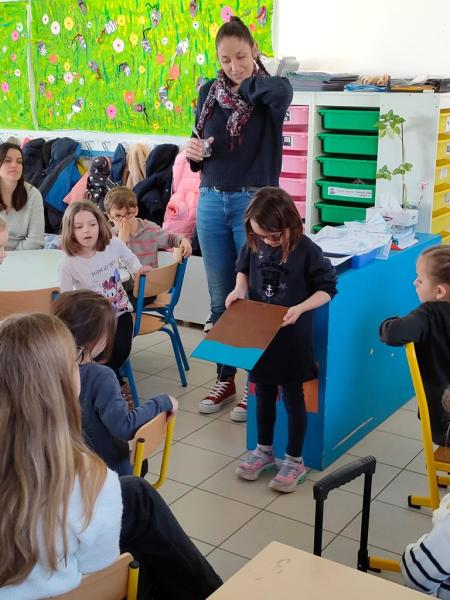 Dans le cadre de la politique culturelle du Pays de Saint Gilles Croix de Vie, un Contrat Local d’Education Artistique (C.L.E.A) a été signés entre la communauté de communes et l’État. Par le biais d’un appel à projet, une résidence d’artistes s’est installée sur le territoire pour développer et exposer des projets dans le champ des arts plastiques. C’est dans cette dynamique que deux artistes se sont rendus dans la classe des CE afin d’y présenter la mission de cartographie sensible sur l’eau qu’ils mènent dans notre commune.