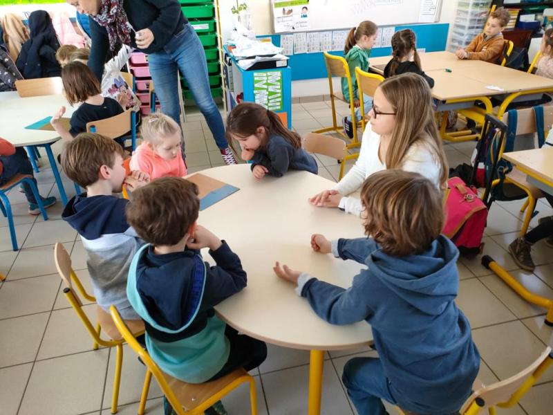 Dans le cadre de la politique culturelle du Pays de Saint Gilles Croix de Vie, un Contrat Local d’Education Artistique (C.L.E.A) a été signés entre la communauté de communes et l’État. Par le biais d’un appel à projet, une résidence d’artistes s’est installée sur le territoire pour développer et exposer des projets dans le champ des arts plastiques. C’est dans cette dynamique que deux artistes se sont rendus dans la classe des CE afin d’y présenter la mission de cartographie sensible sur l’eau qu’ils mènent dans notre commune.