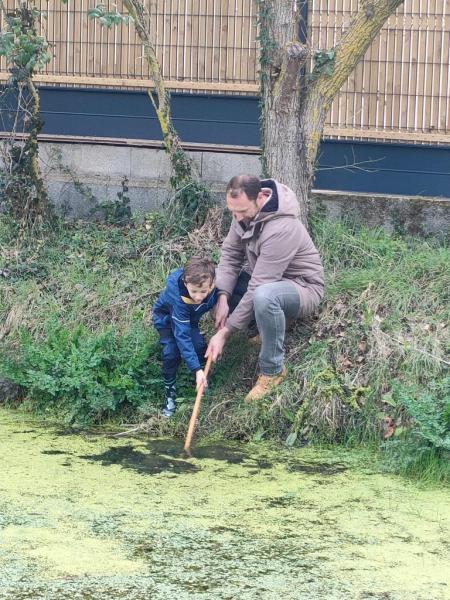 Mardi 28 mars, au cours de la deuxième séance, un diaporama a été présenté aux enfants pour nommer toutes les petites bêtes pouvant peupler les milieux humides. Cette présentation en avance n’a pas été inutile puisque c’est avec connaissance et détermination que les élèves ont enfilé leurs bottes pour la sortie pêche. Le long de la mare, ils ont ainsi observé les insectes, ramassé et capturé les organismes qui s’y trouvaient. En regagnant la classe, les comptes sont dressés : 16 espèces différentes ont été retrouvées. De véritables explorateurs !