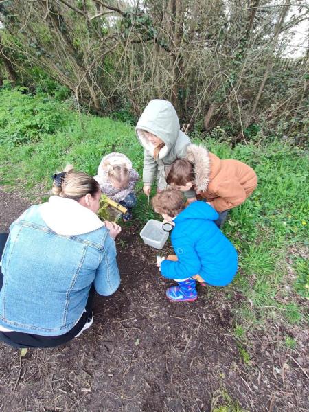 Mardi 28 mars, au cours de la deuxième séance, un diaporama a été présenté aux enfants pour nommer toutes les petites bêtes pouvant peupler les milieux humides. Cette présentation en avance n’a pas été inutile puisque c’est avec connaissance et détermination que les élèves ont enfilé leurs bottes pour la sortie pêche. Le long de la mare, ils ont ainsi observé les insectes, ramassé et capturé les organismes qui s’y trouvaient. En regagnant la classe, les comptes sont dressés : 16 espèces différentes ont été retrouvées. De véritables explorateurs !