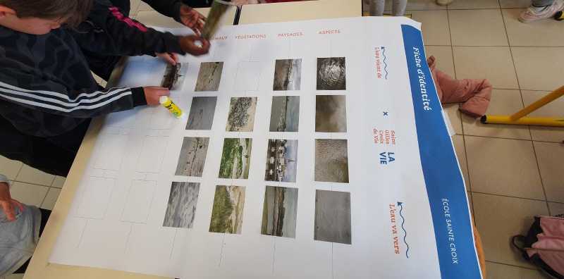 Dans le cadre de la politique culturelle du Pays de Saint Gilles Croix de Vie, un Contrat Local d’Education Artistique (C.L.E.A) a été signés entre la communauté de communes et l’État. Par le biais d’un appel à projet, une résidence d’artistes s’est installée sur le territoire pour développer et exposer des projets dans le champ des arts plastiques. C’est dans cette dynamique que deux artistes se sont rendus dans la classe des CE afin d’y présenter la mission de cartographie sensible sur l’eau qu’ils mènent dans notre commune.
