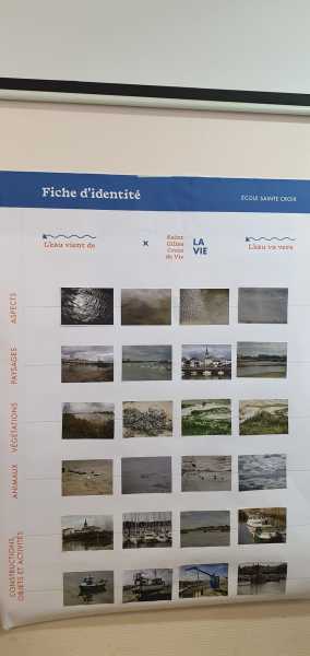 Dans le cadre de la politique culturelle du Pays de Saint Gilles Croix de Vie, un Contrat Local d’Education Artistique (C.L.E.A) a été signés entre la communauté de communes et l’État. Par le biais d’un appel à projet, une résidence d’artistes s’est installée sur le territoire pour développer et exposer des projets dans le champ des arts plastiques. C’est dans cette dynamique que deux artistes se sont rendus dans la classe des CE afin d’y présenter la mission de cartographie sensible sur l’eau qu’ils mènent dans notre commune.