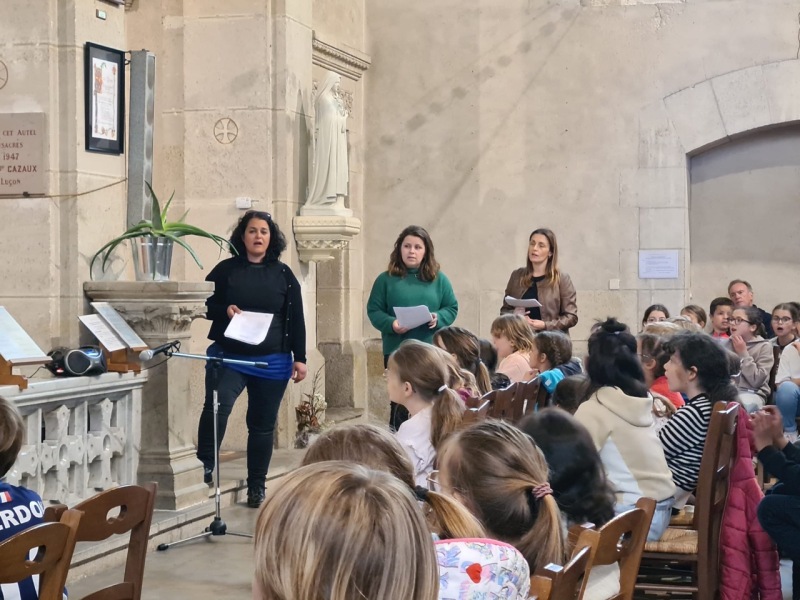 Cette année, les élèves de Grande Section – CP de notre école ont eu le plaisir de rejoindre leurs camarades de l’école de La Chapelle pour célébrer ensemble Pâques. Ce temps de célébration a été un beau moment de partage, mêlant recueillement et joie.