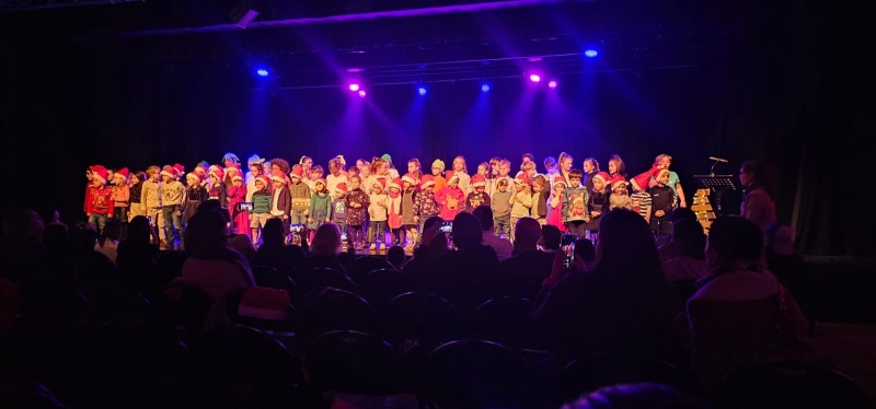Début décembre, la salle de La Conserverie a accueilli la soirée de Noël tant attendue à l’école. Après une première partie préparée par les parents pour ouvrir la fête, les élèves ont défilé sur scène, classe après classe, pour présenter leurs danses et saynètes sur le thème annuel des contes. Les rires, la magie et la convivialité étaient au rendez-vous, et les plus jeunes ont eu la joie de rencontrer le Père Noël pour clôturer cette belle soirée.