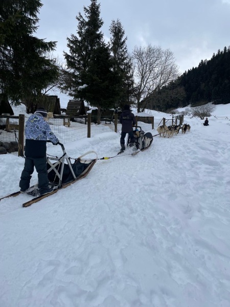 Le lundi, les enfants ont vécu une première journée très attendue avec une balade en chiens de traîneau, moment fort pour approcher les animaux et découvrir un mode de déplacement emblématique des régions enneigées. Ils sont ensuite montés à la station pour l’équipement en matériel de ski, avant de participer leur premier cours de ski encadrés par des moniteurs diplômés. La soirée s’est conclue par l’écriture du courrier pour les familles.