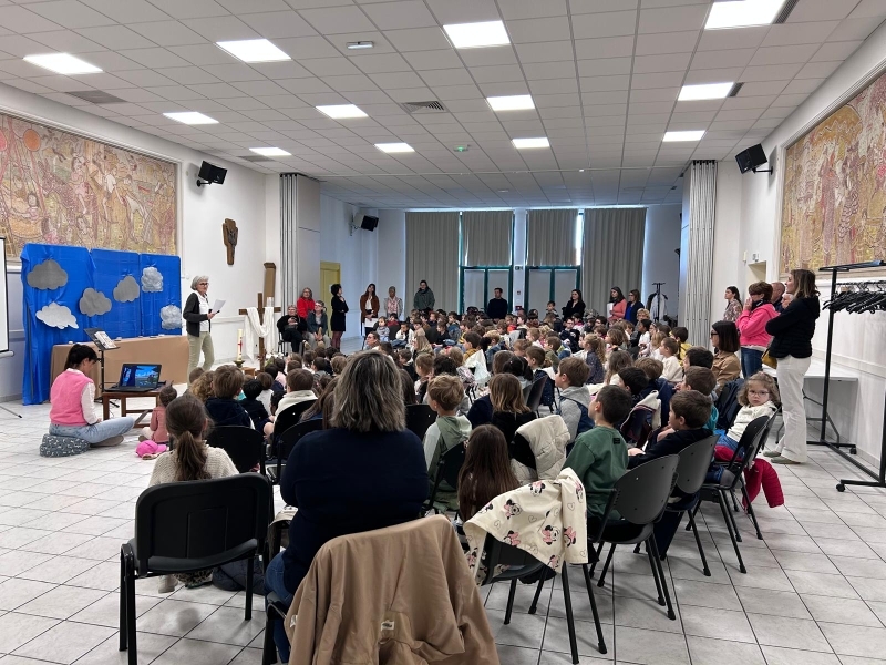 À l’occasion des fêtes de Pâques, les élèves de l’école Sainte-Croix de Saint Gilles Croix de Vie et de l’école de la Chapelle se sont réunis pour une célébration commune placée sous le signe du partage. Ce temps fort a permis aux enfants des deux établissements de vivre un moment de communion privilégié, renforçant les liens qui unissent nos deux communautés éducatives.